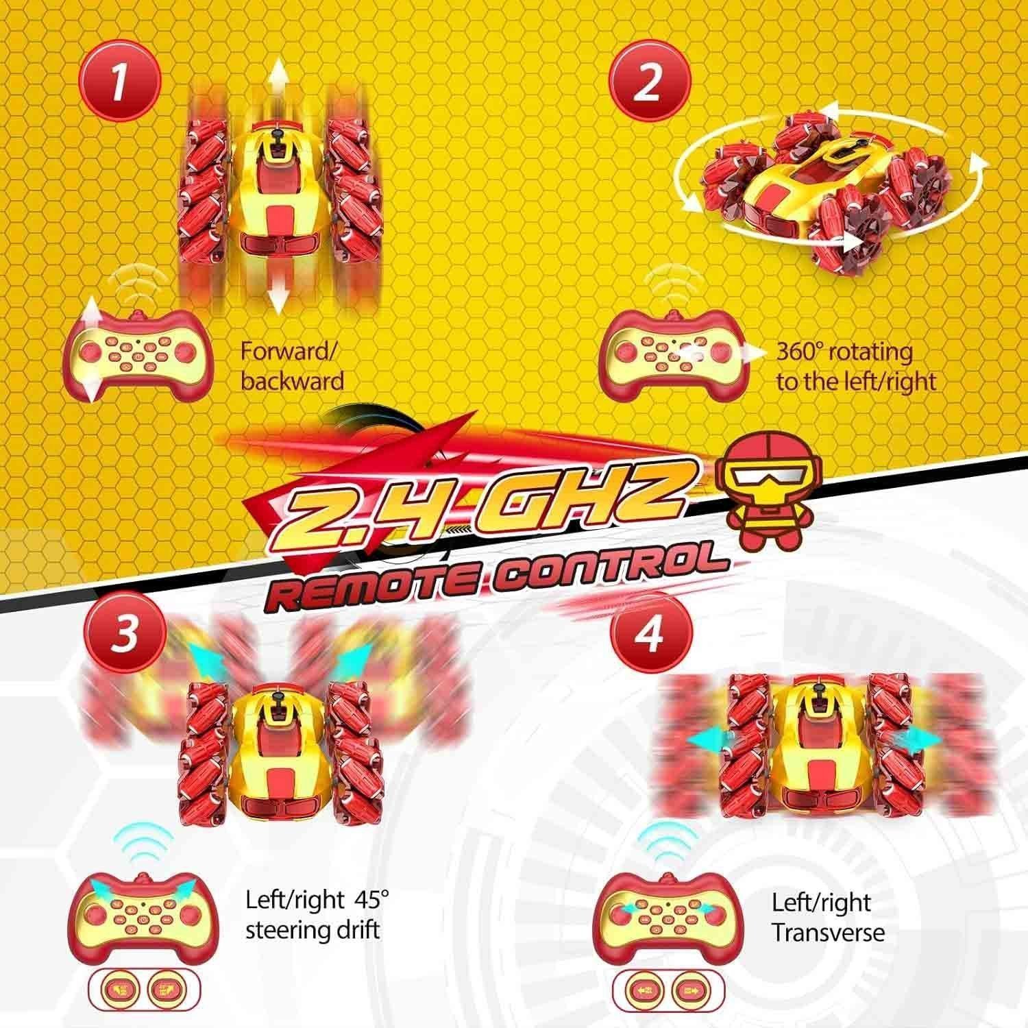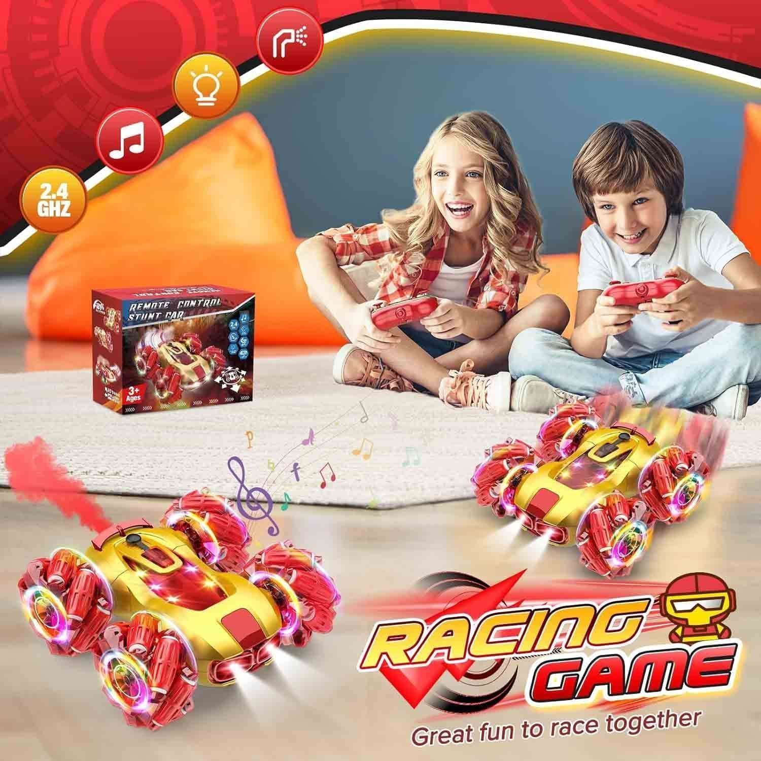 The Braxel Remote Control Car is the ultimate gift for boys aged 3-12, designed to provide endless fun and excitement. With its upgraded multi-function capabilities, the car can move forward, backward, rotate, drift, and perform 360° spins, making it perfect for outdoor play. The car features a vibrant red and gold design that is loved by kids, along with built-in spray and music functions. Equipped with a long-lasting rechargeable battery and USB Type-C charging, the car ensures hours of uninterrupted play. Its durable, impact-resistant tires allow it to easily navigate any terrain. An ideal gift for birthdays or special occasions!