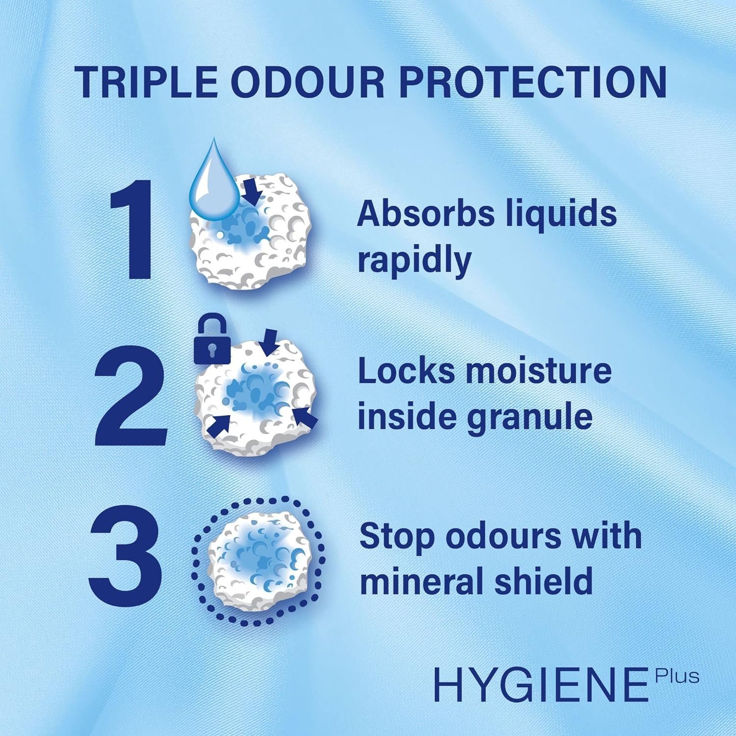 • Each granule of Catsan Hygiene Cat Litter ensures reliable and long lasting odour control, absorbing liquids and locking away moisture before odours can develop
