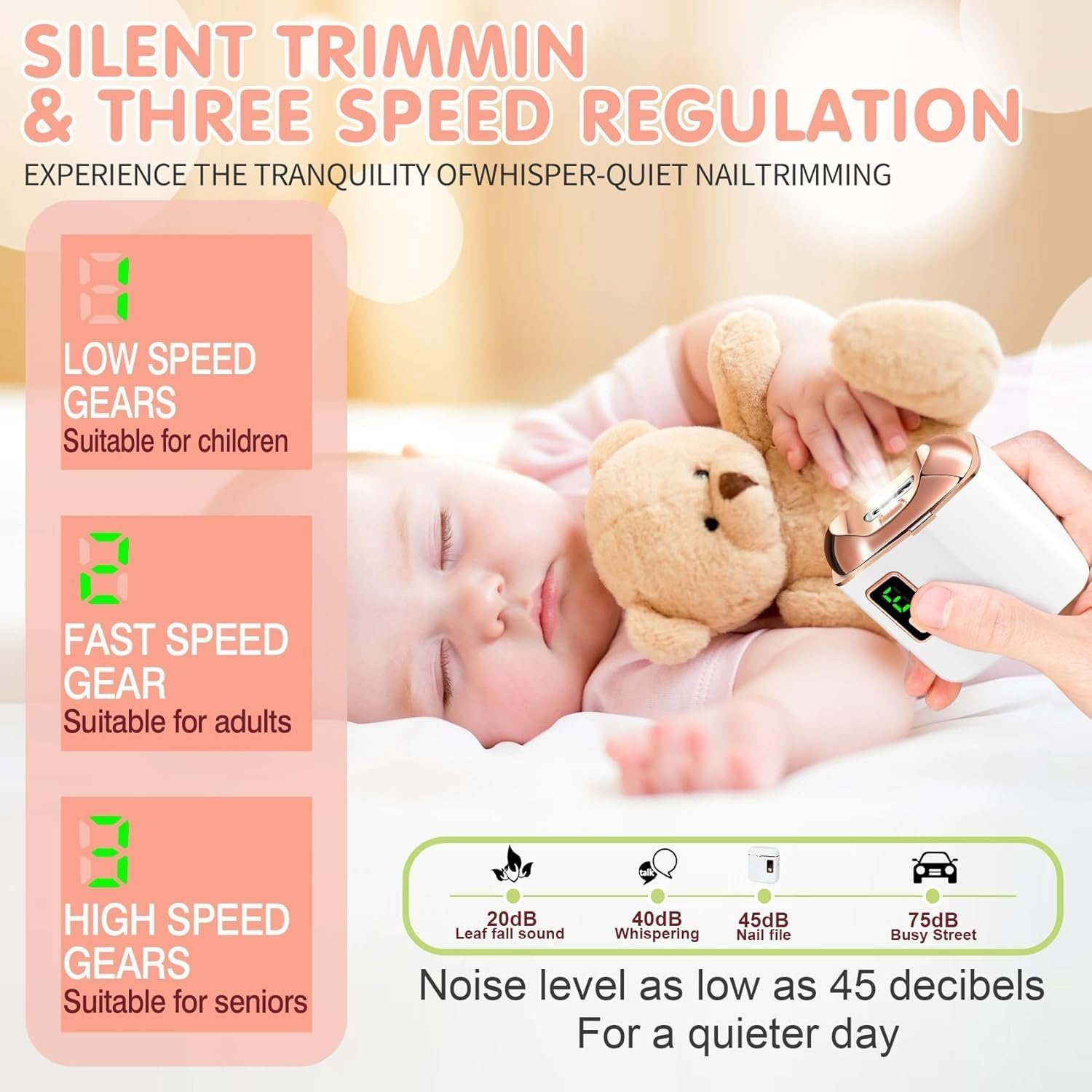 Electric Nail Clipper with LED Light, USB Rechargeable Nail Trimmer, 3-Speed Fingernail Manicure for Baby, Kids, Seniors, and Adults – Perfect for Elderly Nail Care, White
