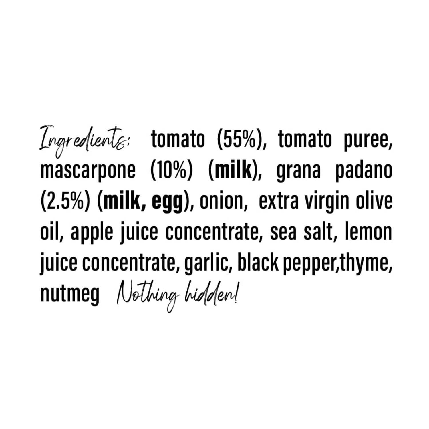 | Allergen information | Contains: Milk, Eggs |