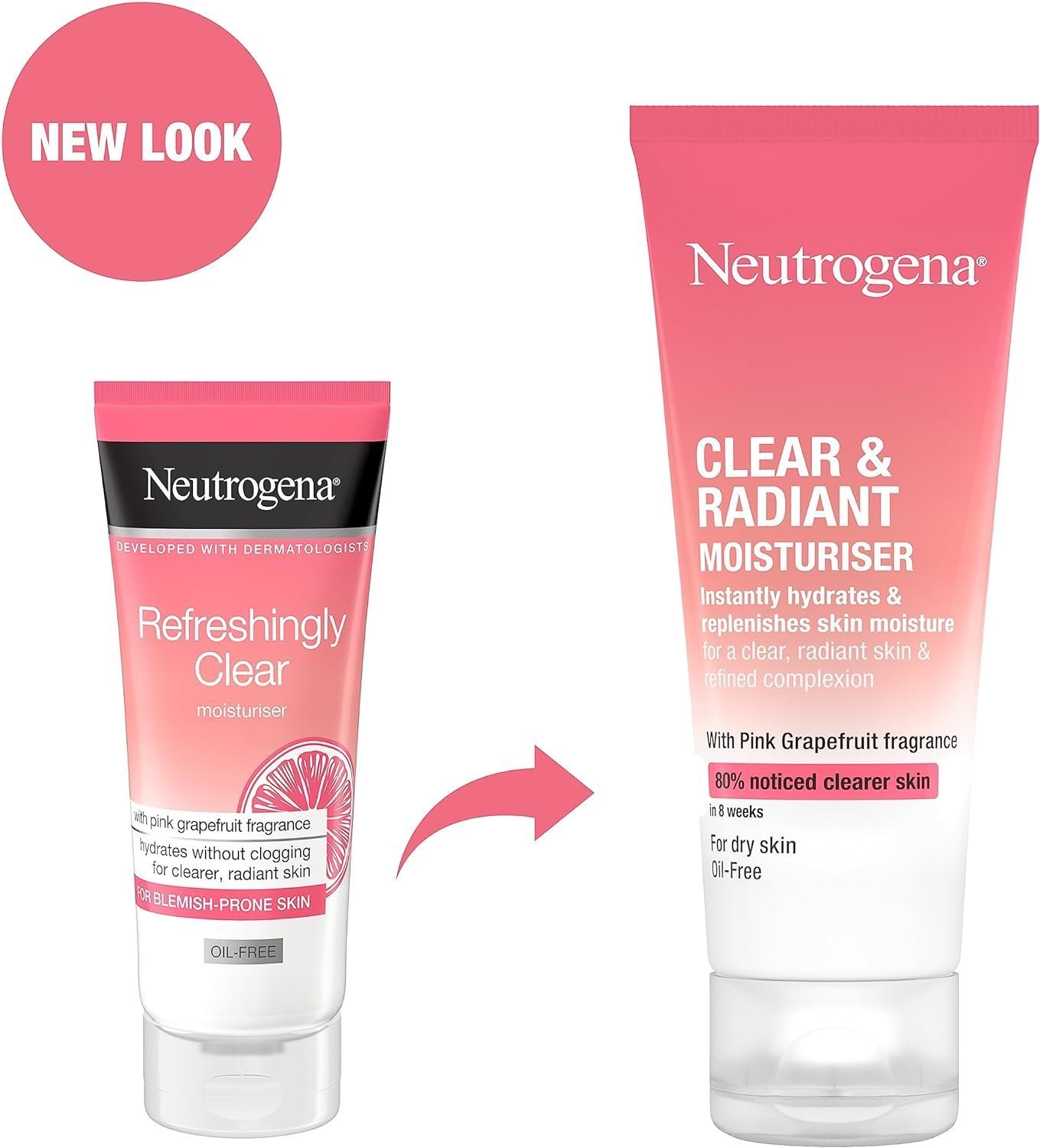 - Product delivery: Neutrogena Clear & Radiant Oil-Free Moisturiser (1x 50ml), moisturiser for dry and blemish-prone skin, refreshing and purifying face lotion with pink grapefruit fragrance