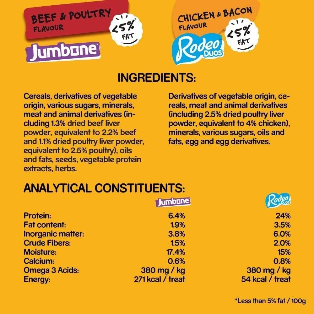Pedigree Multipack with 24 Rodeo Duos Chicken and Bacon Flavour and 4 Jumbone Beef and Poultry Flavour, Pack of 2