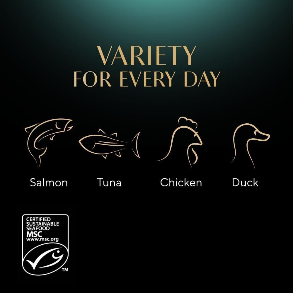 - Sheba is committed to 100% sustainably sourced fish that is why Salmon and Tuna in Sheba Sauce Lover fish cat food recipes are sustainably sourced and MSC certified.